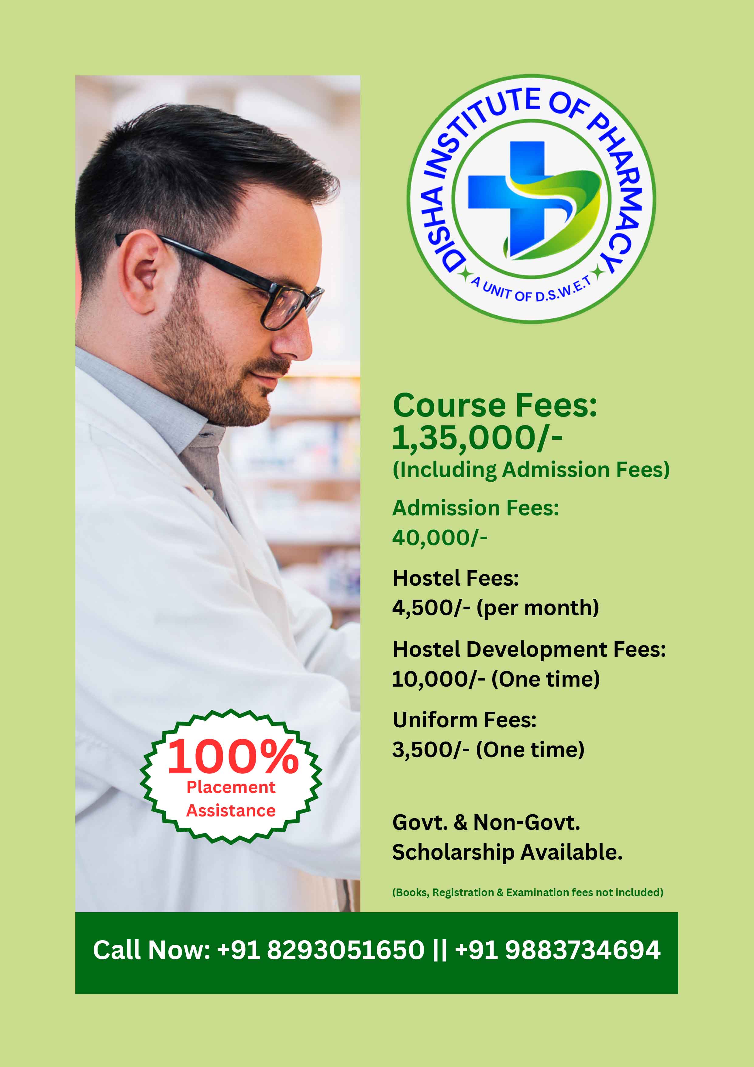 Disha Insitute of Pharmacy offers 2 years Diploma in Pharmacy.